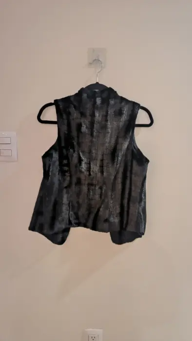 Bonito chaleco tipo animal print. Es afelpado y calentito por lo que es ideal para otoño e invierno. Dice es talla G pero lo recomiendo más para una S/M ya que es de la linea petite.