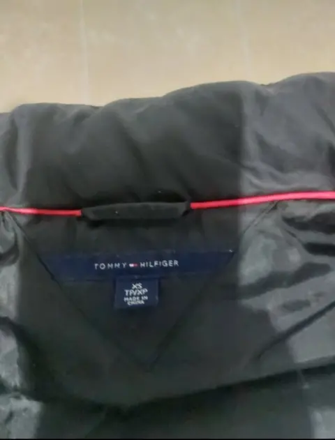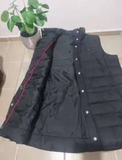 Bonito chaleco Tommy en color negro, ajusta super padre, mide aproximadamente 60 cm del hombro hacia abajo, queda a la cadera