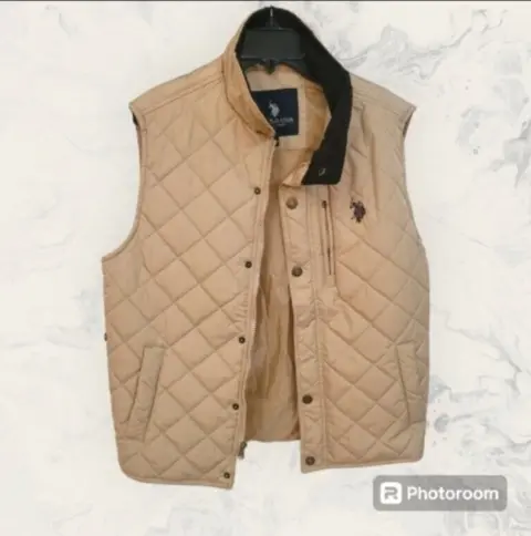 Chaleco US Polo Assassin. Chaleco Casual US Polo assassin, unisex, talla chica, color beige,sin mangas, forrado por dentro, bolsas laterales, logo al frente, cierre de botones y cierre, bolsillo en el pecho con cierre, cuello reforzado, nuevo a estrenar sin etiqueta con detalle le falfa un boton no es visible al ojo checa las fotos para ver estado cosmético.