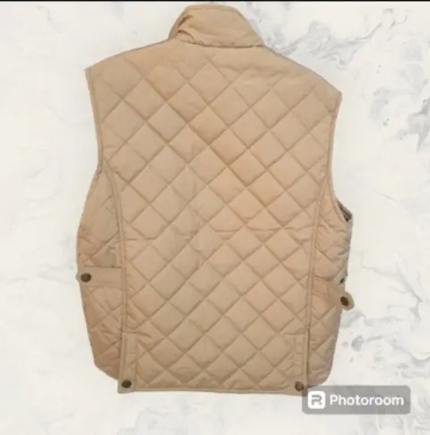 Chaleco Casual US Polo assassin, unisex, talla chica, color beige,sin mangas, forrado por dentro, bolsas laterales, logo al frente, cierre de botones y cierre, bolsillo en el pecho con cierre, cuello reforzado, nuevo a estrenar sin etiqueta con detalle le falfa un boton no es visible al ojo checa las fotos para ver estado cosmético.