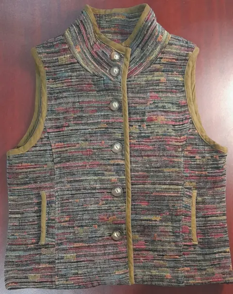 CHRISTOPHER & BANKS chaleco para dama SEMINUEVO. Chaleco para dama, SEMINUEVO, marca CHRISTOPHER & BANKS, talla XL (extra grande), jaspeado mticolor, corte 54% polyester y 46% rayón, forro 100% polyester.