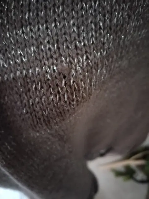 Ensamble tejido con destellos y con detalle de trenzado en parte de enfrente y del cuello, super bonito.. Detalle una mínima jaladita de un hilo se nota en la última foto de ahí en más sin detalle...