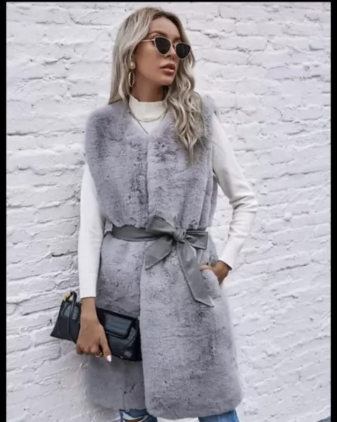 Maxi chaleco Gris de peluche y cinto. Lindo maxi chaleco Gris de peluche y cinto, super combinable y bello talla S completamente nuevo