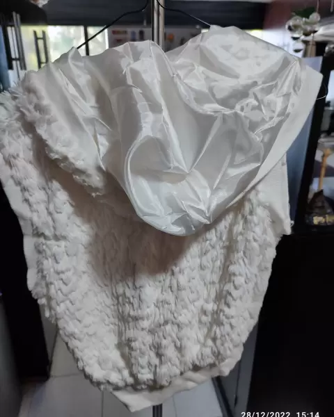 Preciosos chaleco blanco con gorro tipo peluche con lentejuelas, muy bonito es talla mediana. Listo para estrenar nuevisito con etiquetas y muy coqueto