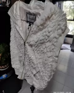 Precioso chaleco blanco mediano. Preciosos chaleco blanco con gorro tipo peluche con lentejuelas, muy bonito es talla mediana. Listo para estrenar nuevisito con etiquetas y muy coqueto