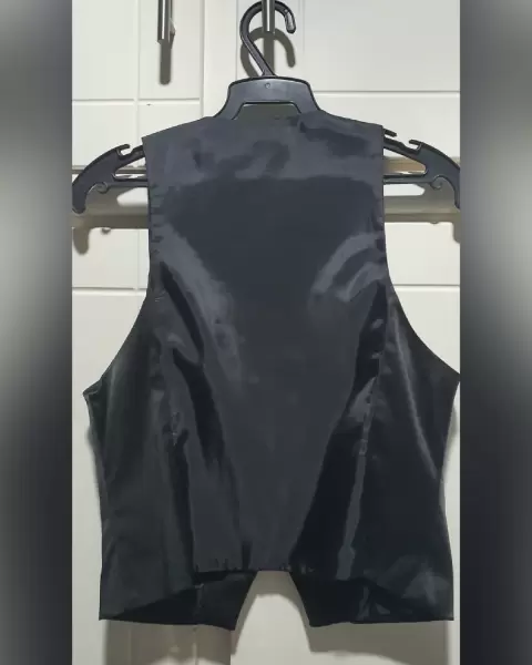 Talla 4 chaleco de vestir satín color negro. Chaleco de vestir negro, tela satinada, talla 5 Tiene 2 botones de brillante.