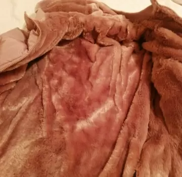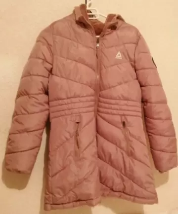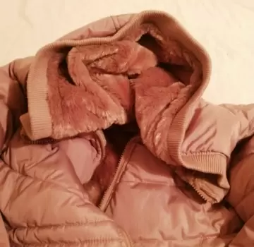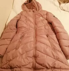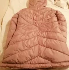 Esta es una hermosa chamarra en color rosa pastel con forro de peluche, muy afelpada, está gruesa y súper resistente a los frios intensos, trae gorra y esta en perfectas condiciones.