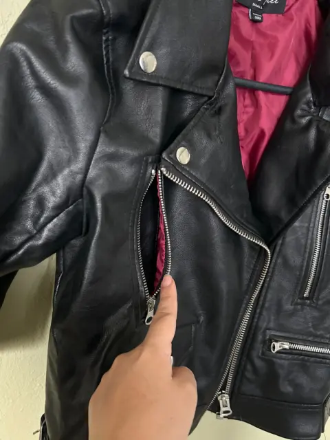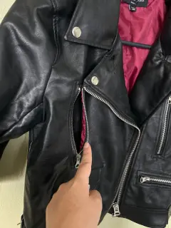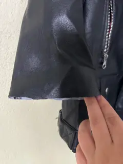 Chamarra biker, sin detalles, así la compré de manga 3/4 es sintéticaSus medidas:45 de axila a axila46 largo