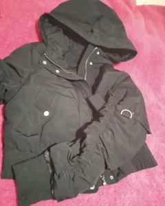Bomber abrigadora. Muy abrigadora con bolsillos de broches en una de las mangas cuenta como un bolsillo