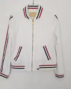 💟 Bomber Jacket Deportiva ❣ L|C Designs💟. 💟 Bomber Jacket Deportiva - Marca: LC Designs (original) - Talla: S - Color: Blanco - Medidas: Hombro a hombro: 40cm ○ Sisa a sisa: 50cm ○ Largo manga: 57cm ○ Largo talle: 48cm - Otros Detalles: Cierre frontal, Forro a tono , con detalle tricolor, en cuello, mangas, bolsillos y cintura - Sin Detalles COMPLETAMENTE NUEVA ...Te interesa alguna de mis prendas !!?? Considera que los precios indicados incluye el cobro de gastos y comisión de la AppTODAS las prendas 👕👖👗🧥🥼👟👢👠📿👚👛👜🎒 se encuentran en EXCELENTE ESTADO y condiciones de uso 💯% GARANTIZADOS‼️‼️ANÍMATE, NO LO PIENSES MÁS‼️💥NO TE VAS A ARREPENTIR 💟