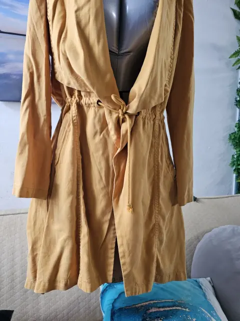 Cardigan mezclilla ligera. Cuello en cascada Mangas Largas Envolvente Cárdigan Cintura Calce. No trae botones , solo el cordón. talla M en etiqueta , pero por el cordón da más de cintura. 43 cm hombro98 cm largo