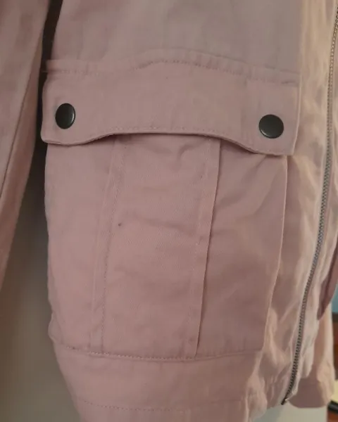 Cazadora Arizona, talla XS queda a S-M, el único detalle que tiene son esas pequeñas manchitas que se ven en la última foto, el cierre y todo lo demás está en muy buen estado.