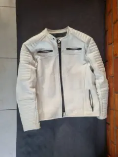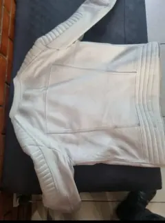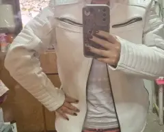Cazadora color blanco. Cazadora blanca de piel de borrego, cuenta con varios cierres, todos funcionan correctamente, y fresca.