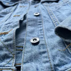 Linda chamarra de mezclillaColor azul cieloEstilo desgastadoComplementa tu oufitSe amolda perfecto