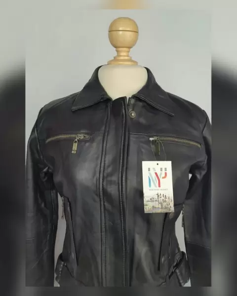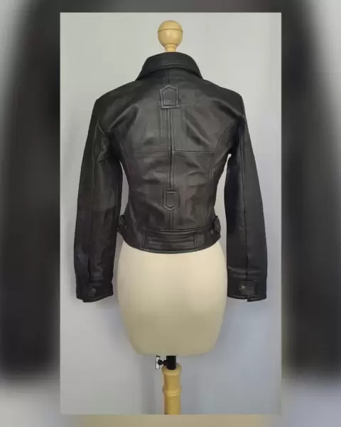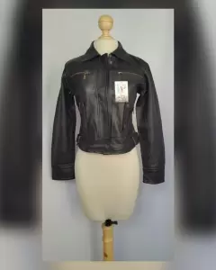 Cazadora en Piel estilo Biker. Cazadora en piel tono negro ébano estilo biker, cuello clásico c/solapas, cierre p/cremallera oculta p/tapeta c/snaps, 2bolsillos parche c/cremallera, 2 bolsos vivo c/cremallera y tapeta c/snaps, manga larga terminada en puño c/tira y snap, tiras en cintura regulables y forro interior. Talla M. Dimens cms: 40 hombro, 47.5 axila, 45 cintura (regulable), 54 largo, 60 largo manga. 100% piel ovino. Para limpieza con especialista.***LA PIEL DE ESTA CHAMARRA ES EXTRA SUAVE***