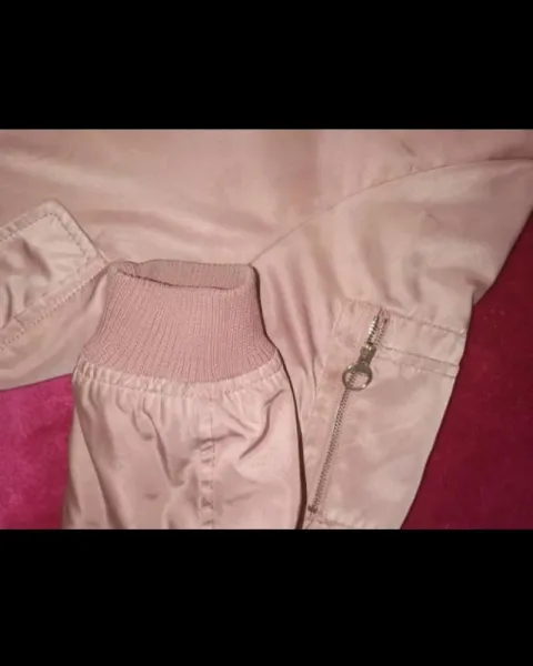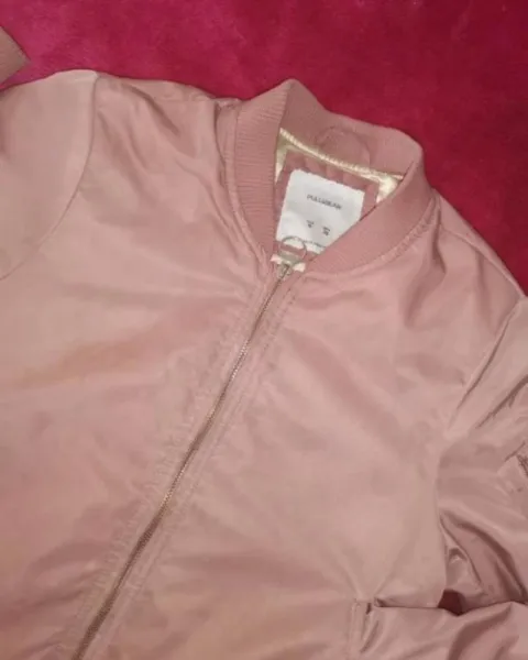 Chamarra tipo cazadora marca pull and bear, tiene forro dorado y bolsillo en la parte de adentro, es calentita.