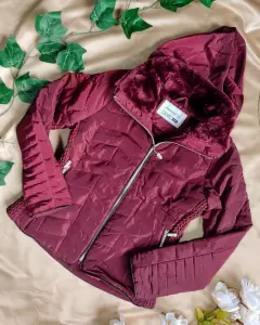 Chamarra afelpada color rojo vino