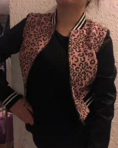 Lindo bomber animal print en rosa, sin detalles, una puesta