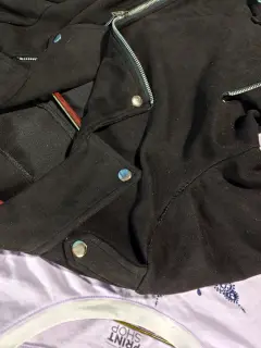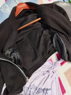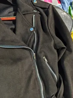 Chamarra Biker piel de durazno. Chamarra corta (crop) Biker piel de durazno Negra. Cierre al frente, escote cruzado. Ligero stretch. Cinturón en la parte de abajo. Bolsillos laterales. Un básico para completar tu look. 👌😻 Unitalla.