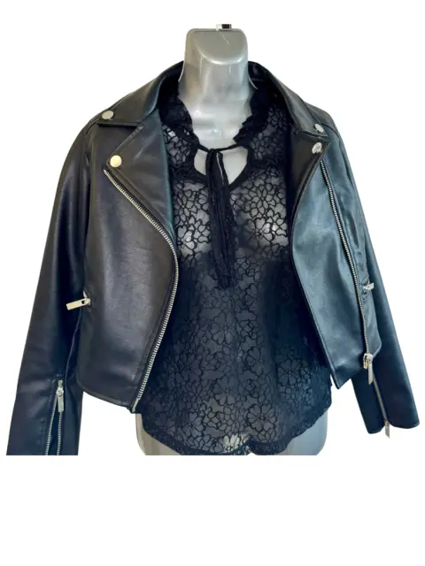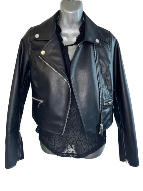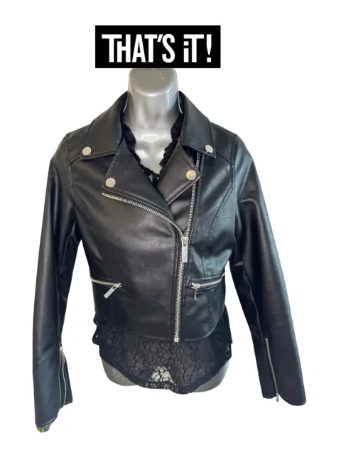 Chamarra tipo Biker de cuero sintético de la marca That’s iT.Cuenta con múltiples cierres metálicos y forro suave.Se amolda a la figura dando un silueta espectacular.Es perfecta para combinar con jeans, leggings o ese look rockero.