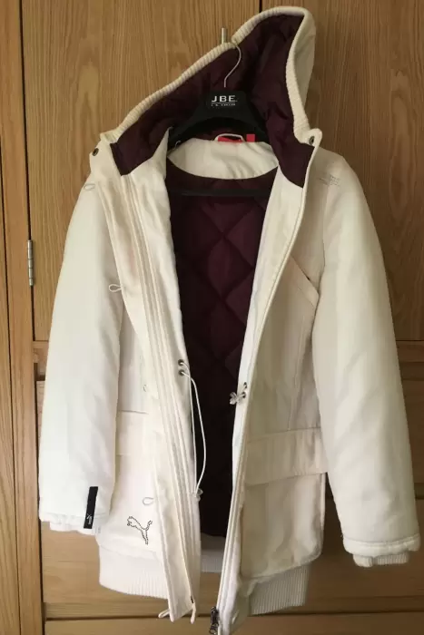 Chamarra blanca/beige. Chamarra de algodón con gorroMarca pumaTalla ChEn muy buen estadoCalientita, perfecta para temporada de frío