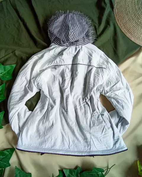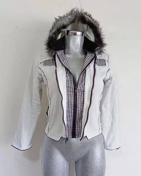 🤩Precio a tratar si la compra es inmediata😊 o si te interesan mas prendas, se envian en un mismo paquete para ahorrar en envios❄Chamarra color blanco con negro✨Es talla S👉Esta afelpada por dentro🪡MEDIDAS de costura a costuraHombro 42 cmAxila 48 cmLargo 49 cm❗Tiene un pequeño detalle marcado en las fotos, aun costado de la bolsa derecha, no muy visible a la vista