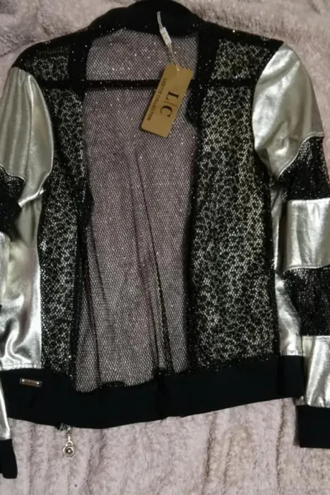 Chamarra dorada brillante, la parte trasera es malla negra y el interior es leopardo. Una pieza muy divertida para no pasar desapercibido!Talla: LNuevaMarca: Lizette Collection