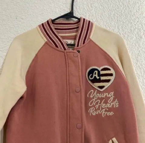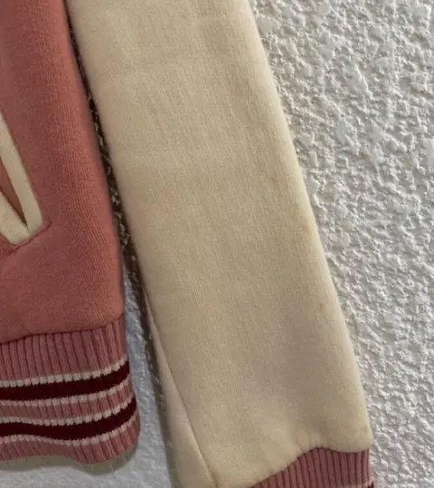 Chamarra BSK. Chamarra súper bonita y calientita. Marca Bershka, talla S. Color rosa con cremita. Detalle: tiene unas manchitas pequeñas por estar guardada, pero se le quitan lavándola.