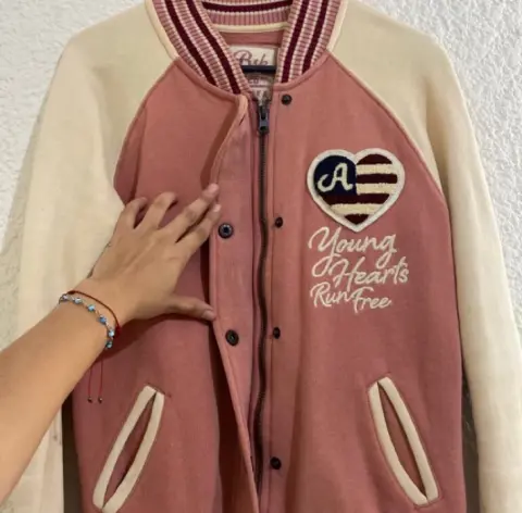 Chamarra súper bonita y calientita. Marca Bershka, talla S. Color rosa con cremita. Detalle: tiene unas manchitas pequeñas por estar guardada, pero se le quitan lavándola.