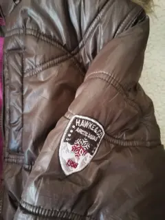 Chamarra café Hawke&Co. Chamarra de pluma café Hawke&Co median excelente para clima frío, muy calientita con adapta ion de peluchiyo en la capucha