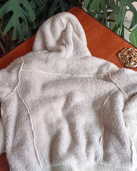 Chamarra de borreguito Bershka.Cierre doble, tiene unas manchas amarillas (por dentro, no se nota) cerca de las bolsas.