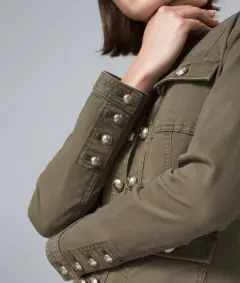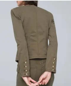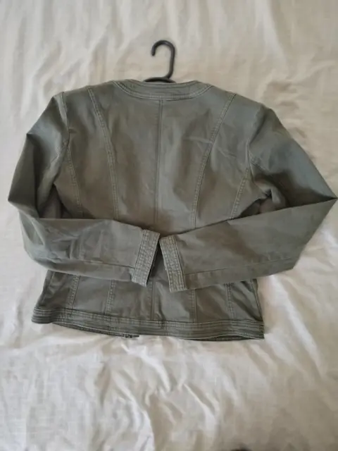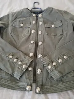 Bonita Chamarra casual cuello mao, botones platas, color verde militar, súper combinable, en perfectas condiciones solo se utilizó una vez. Talla chica.