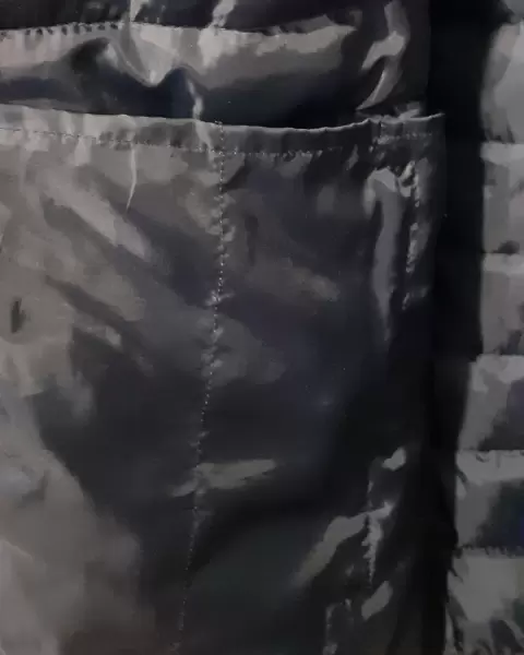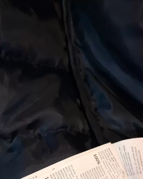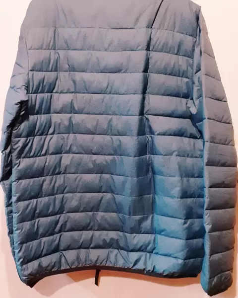 Bolsas grandes interiores y boksas exteriores con cierre en ambos lados. Cuello alto. Sofisticada combinable comprada en Europa de United Kingdom. Mide 45 cm de hombro a hombro, 52 cm ancho, tipo impermeable tacto muy suave.