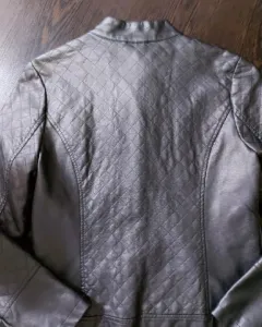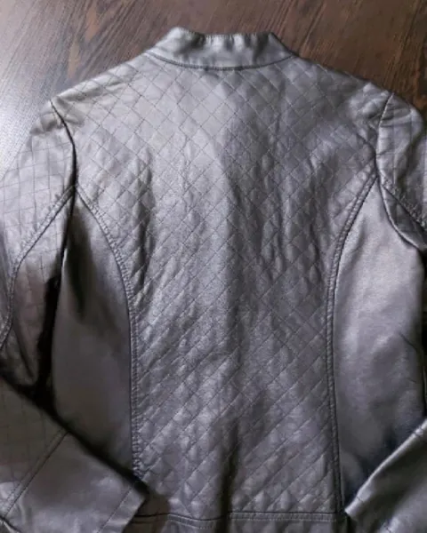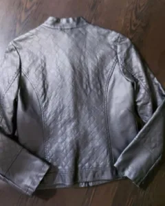 Chamarra Coffe Shop tipo piel. Tipo piel color plata talla S de axila 46 cm