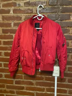 Chamarra color rojo. Hermosa chamarra color Rojo, en perfecto estado tal y como se muestra en la imagen, por dentro está ligeramente rota de lado de la manga pero no se nota ya que es por dentro