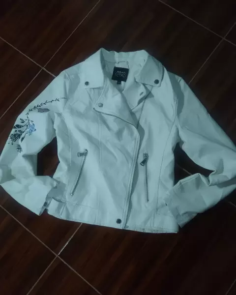 Preciosa chamarra con estampados muy padres que resaltan a la vista, es talla L pero igual le queda a una M, está nueva sin ningún detalle