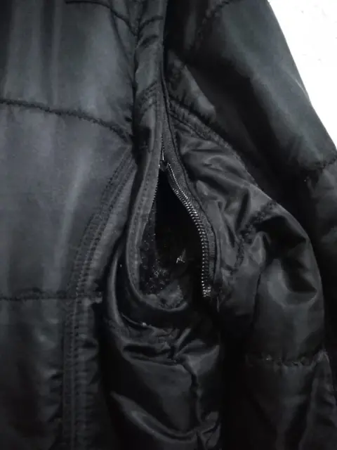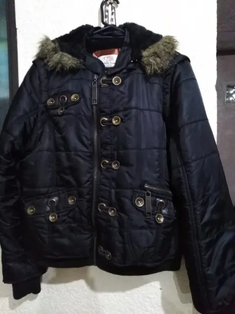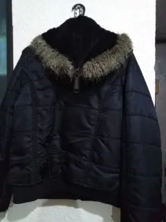 Chamarra corta color obscuro, dice talla G pero quedaría muy bien a una M en buen estado, se desmontan mangas y gorro, para quedar como chaleco, sin detalles