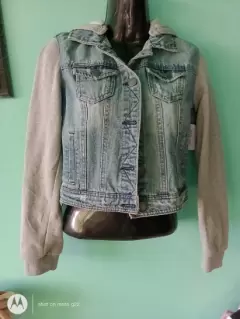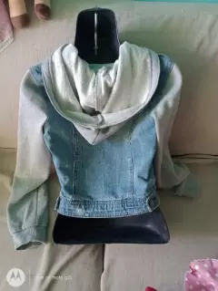 Chamarra de mezclilla con gorro y mangas de sudadera esta en buen estado tiene detalle ya que tiene bolitas por dentro (checar última foto)Leer bien la descripción 📝📃👀Cualquier duda estoy para servirteLos envío en cajas recicladas y bolsas*NO OFERTES SI NO VAS A REALIZAR LA COMPRA*