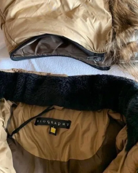 Chamarra súper calientita 🥰, ideal para esta temporada, solo tiene un poquito caída la pintura negra de los cierres. Medidas: 58cm largo, 40cm h a hombro y 47cm busto