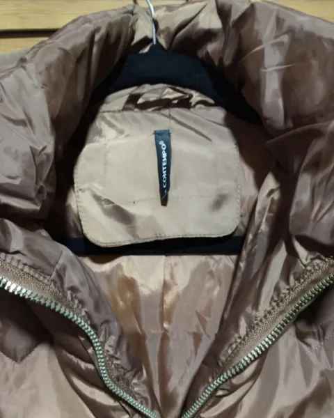 Chamarra Contempo talla G. Chamarra Contempo talla G, nueva sin etiqueta, con peluche en gorro, gorro no desmontable, muy calientita, el color es un cafe como dorado. Muy linda