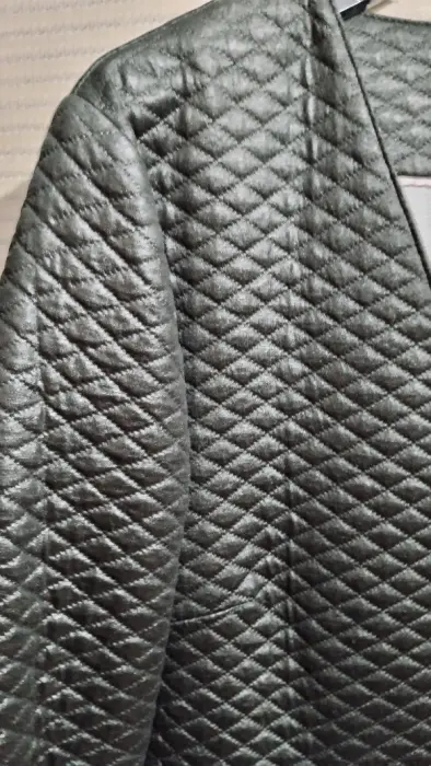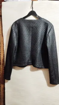 Chamarra tipo torero, terminado polipiel. Textura abullonada. Muy ligerita pero abrigadora. Ideal para vestidos y tops .