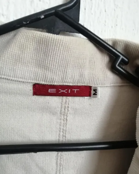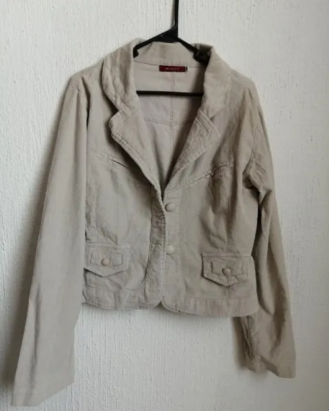 Chamarra corta de Pana talla M. Chamarra de pana marca exit, es una chamarra corta, con mangas largas, tiene un poco de desgaste en la línea de dobles del cuello pero con el cuello doblado no se nota.