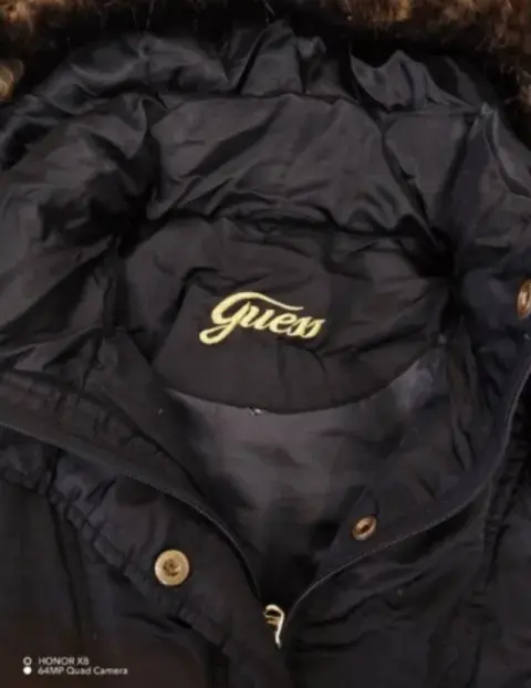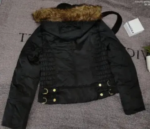 Chamarra corta GUESS T S, en color negro con herrajes y cierre en dorado, tiene un plisadito muy coqueto en la parte de atrás simulando una biker (gorro desmontable) ✨ Medidas ✨49cm de axila/axila55cm de hombro a tiro (largo) Por el tipo de tela NO ESTIRA