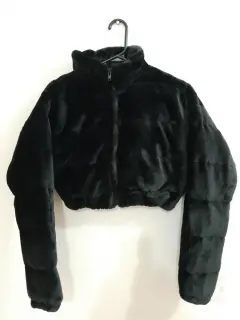 Chamarra corta para dama, con forro de peluche por fuera, un poco gruesa para proteger bien del frio, forro liso por dentro, color negra, sin bolsas, con resorte en la parte de abajo y en las muñecas para ajustar mejor, unitalla y a la moda en $350