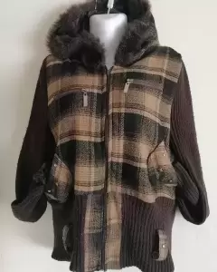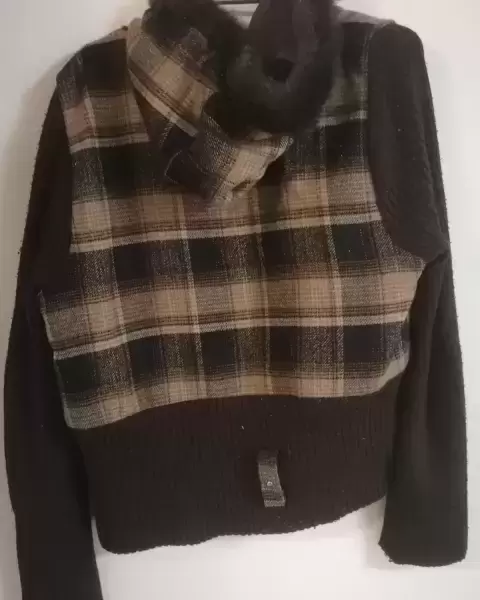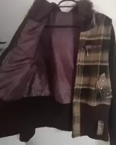 Chamarra cuadriculada cafe, queda perfecta con unos jeans, tiene gorro, tiene forro.Las mangas se estiran si tienes los brazos anchosTalla: MMedidas: *De axila a axila 48 cm*Largo desde los hombros 58 cm.Cupón: JanMoPBn0H