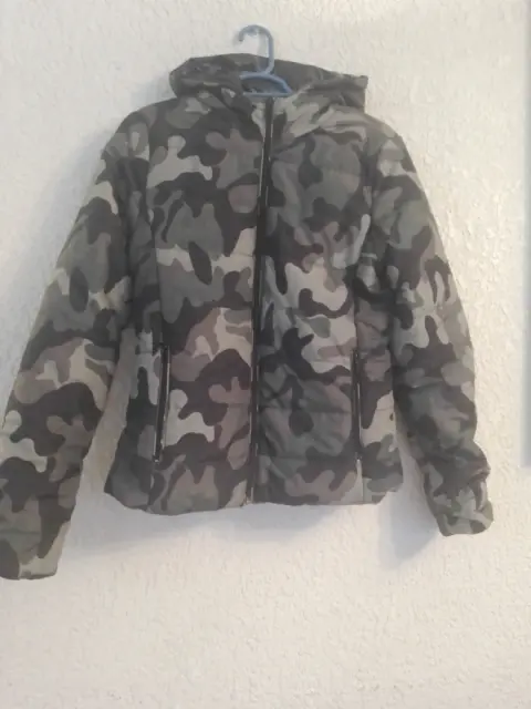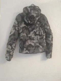Chamarra de camuflaje en color verde, tiene bolsas y gorro, es nueva y practica