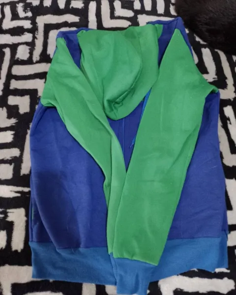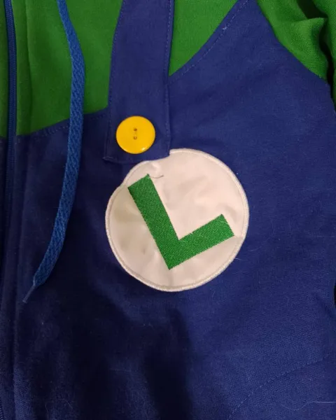 Chamarra con diseño de luigi de Mario bros los colores son azul con verde está sin ningún detalle