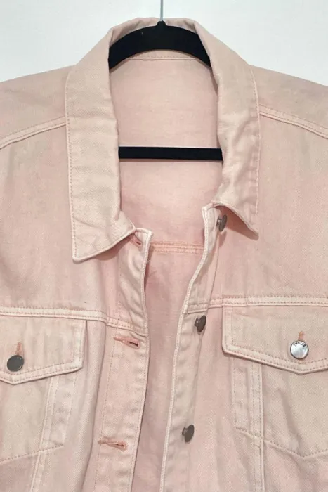 Chamarra de mezclilla duraznoOversizeTiene muy pocas puestas, está en perfecto estado esperando ser tuya!