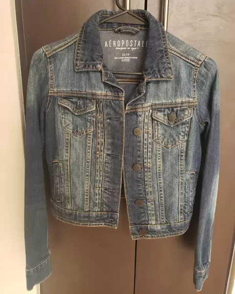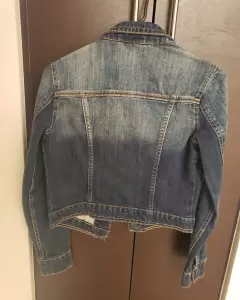 Hermosa chamarra sin detalles es me mezclilla.Llega abajo del ombligo aproximadamente
