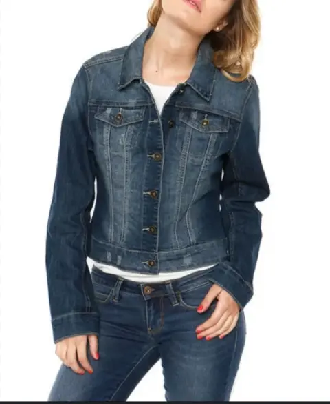Chamarra de mezclilla no es stretch es rígida más no dura talla M la puedes lucir tal cual foto ilustrativa está muy linda 🥰🌇👟👖👗👠🛍️👌🤩